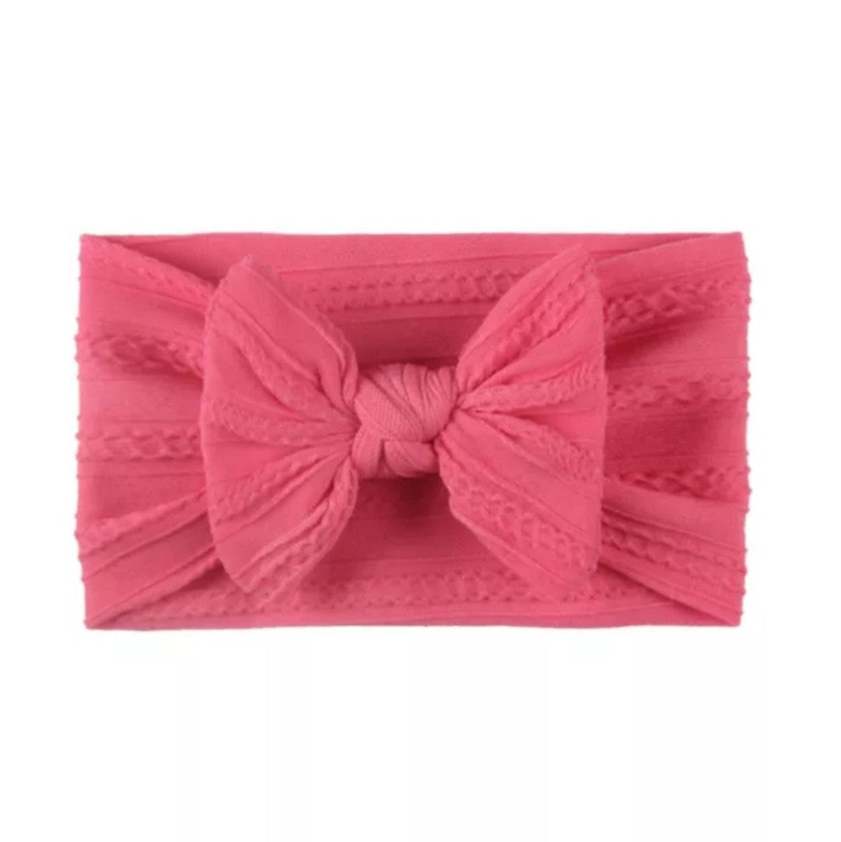 Rose pink or rose red you deciede, beautiful either way soft and stretchy baby bow headband in cable knit effect.
